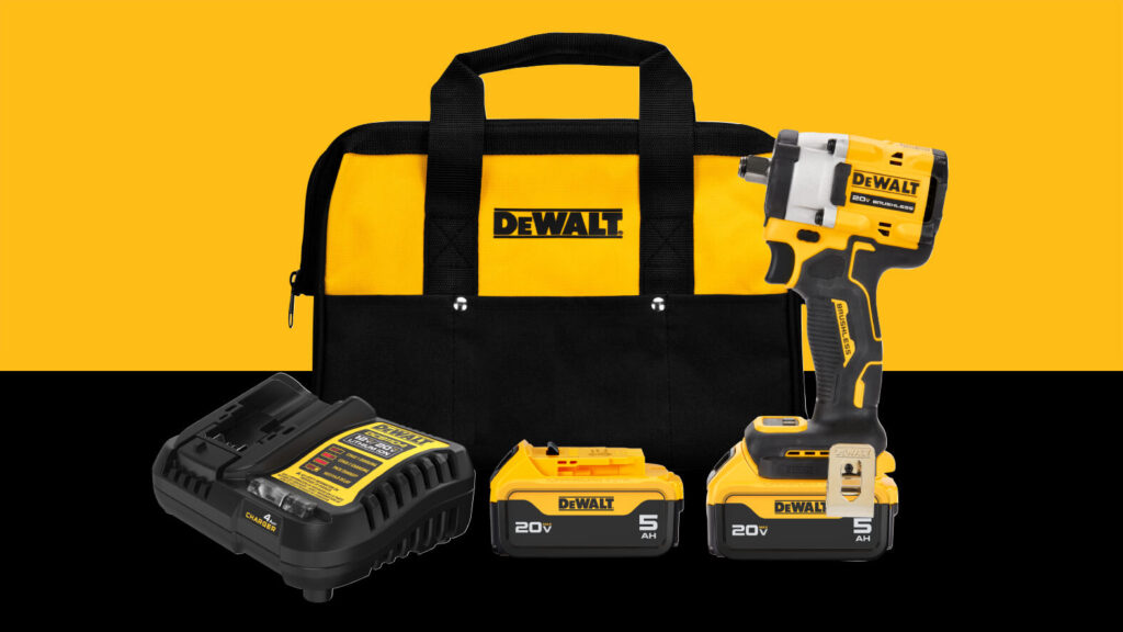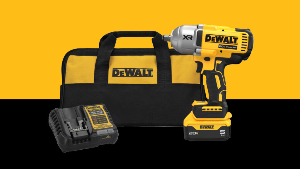 Buy a 20V MAX* XR® 1/2 in. Brushless High Torque Impact Wrench With Hog Ring Anvil (Tool Only) (DCF961B), Get a 20V MAX* XR POWERSTACK™ 5Ah Battery Kit (DCBP520C)