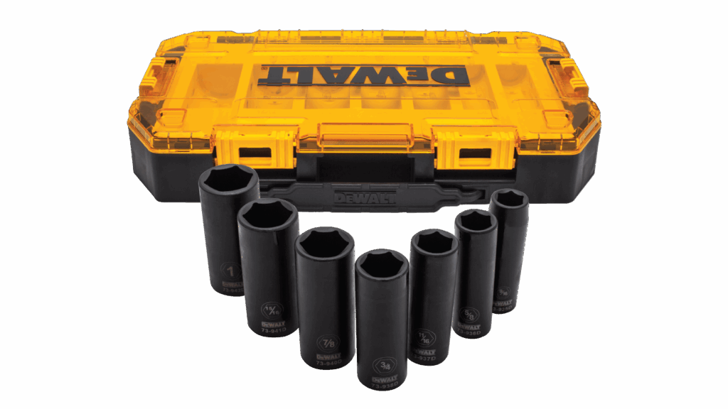 Buy a 20V MAX* XR® 1/2 In. High Torque Impact Wrench with Hog Ring Anvil (DCF900P1), Get a 7 Piece 1/2 in Drive Deep Impact Socket Set (DWMT74736)